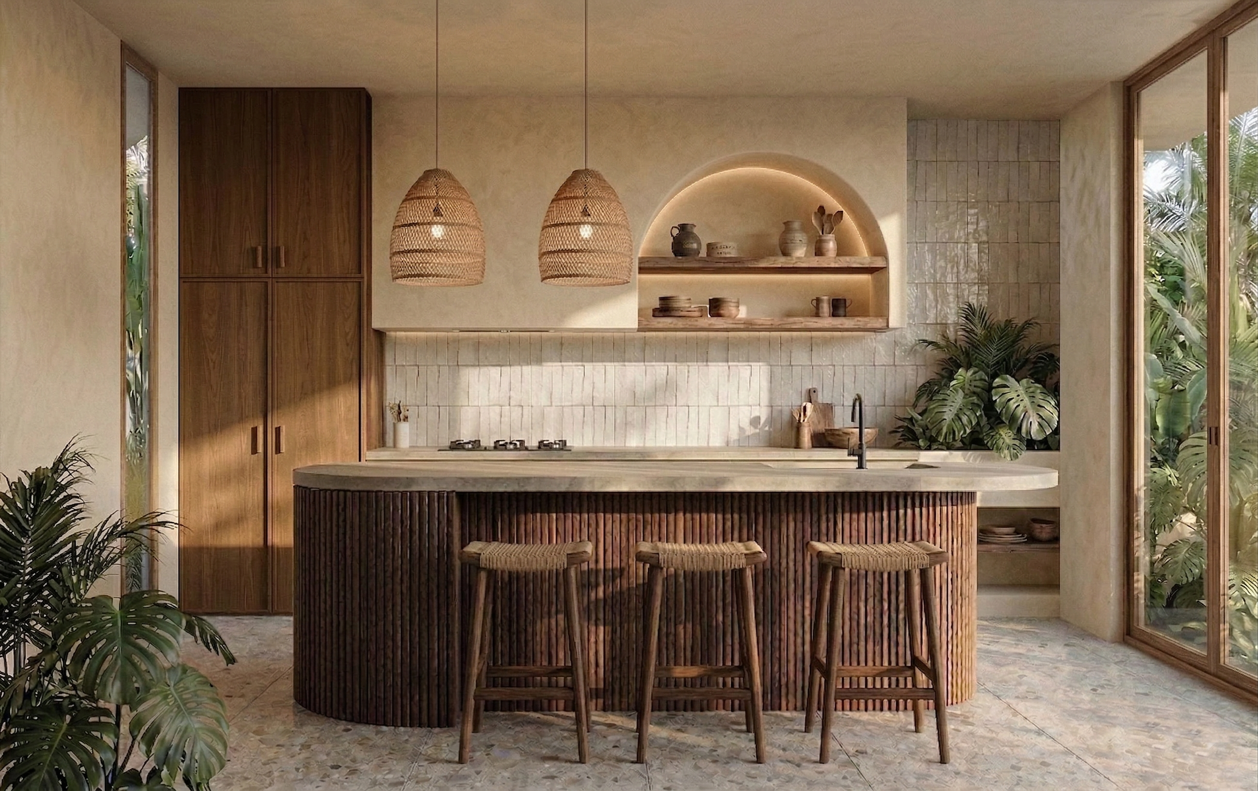 Light is treated as a primary material. Throughout the day, it defines surfaces, deepens textures, and shapes atmosphere.